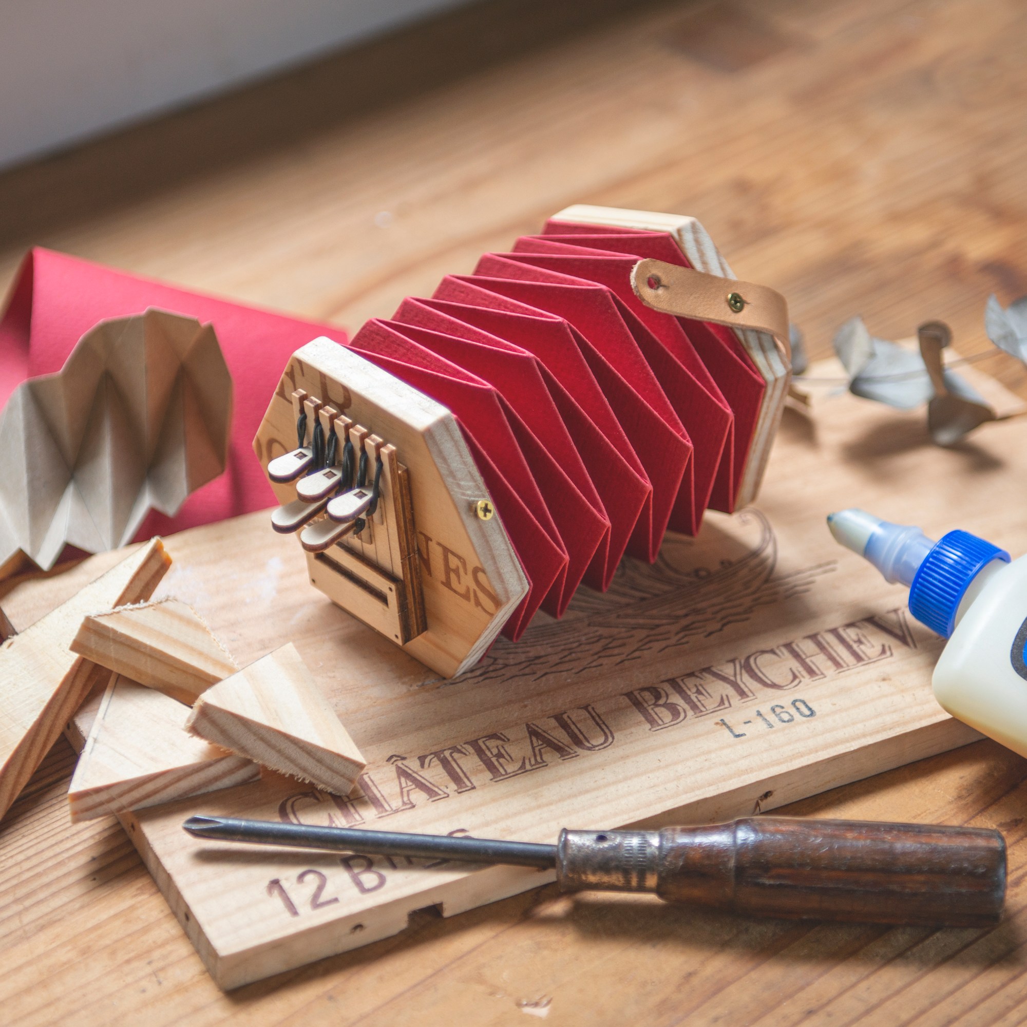 這個時侯,風箱、琴鍵和琴身都完成了,可以把它們組合!