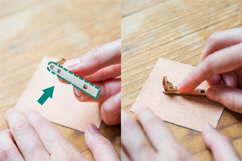 6/ 對正底部黏上,輕力按壓一會兒固定位置。
