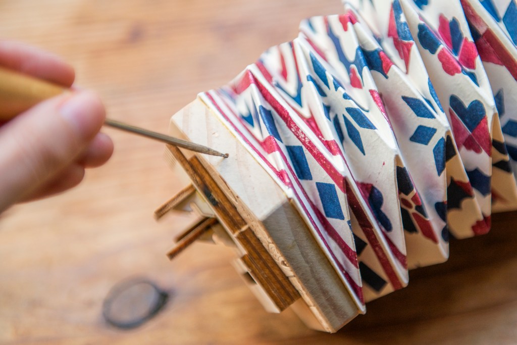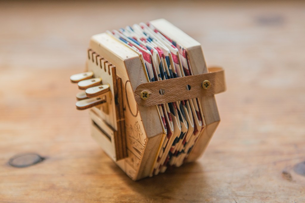 以下是為琴鍵上橡根的部份,以方形手風琴的圖片示範: