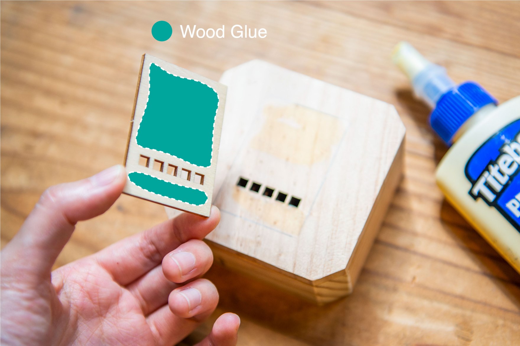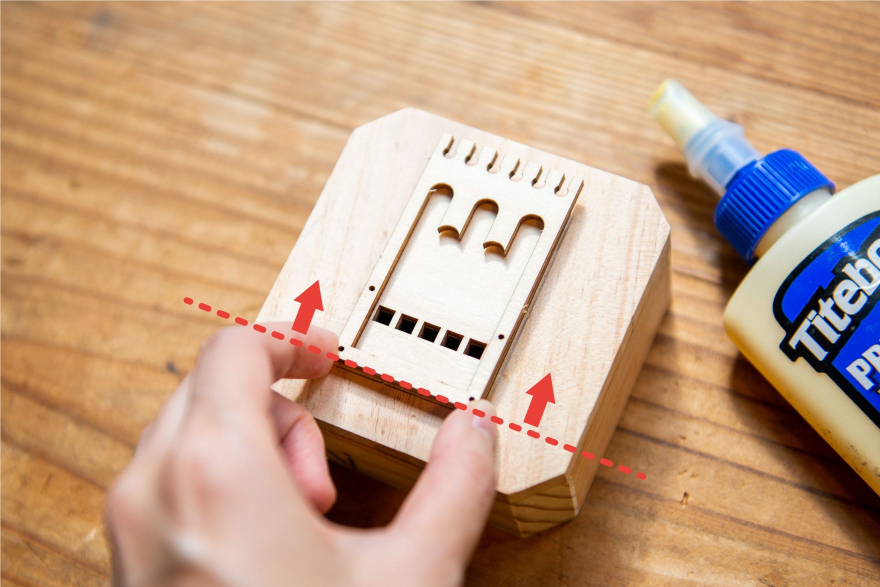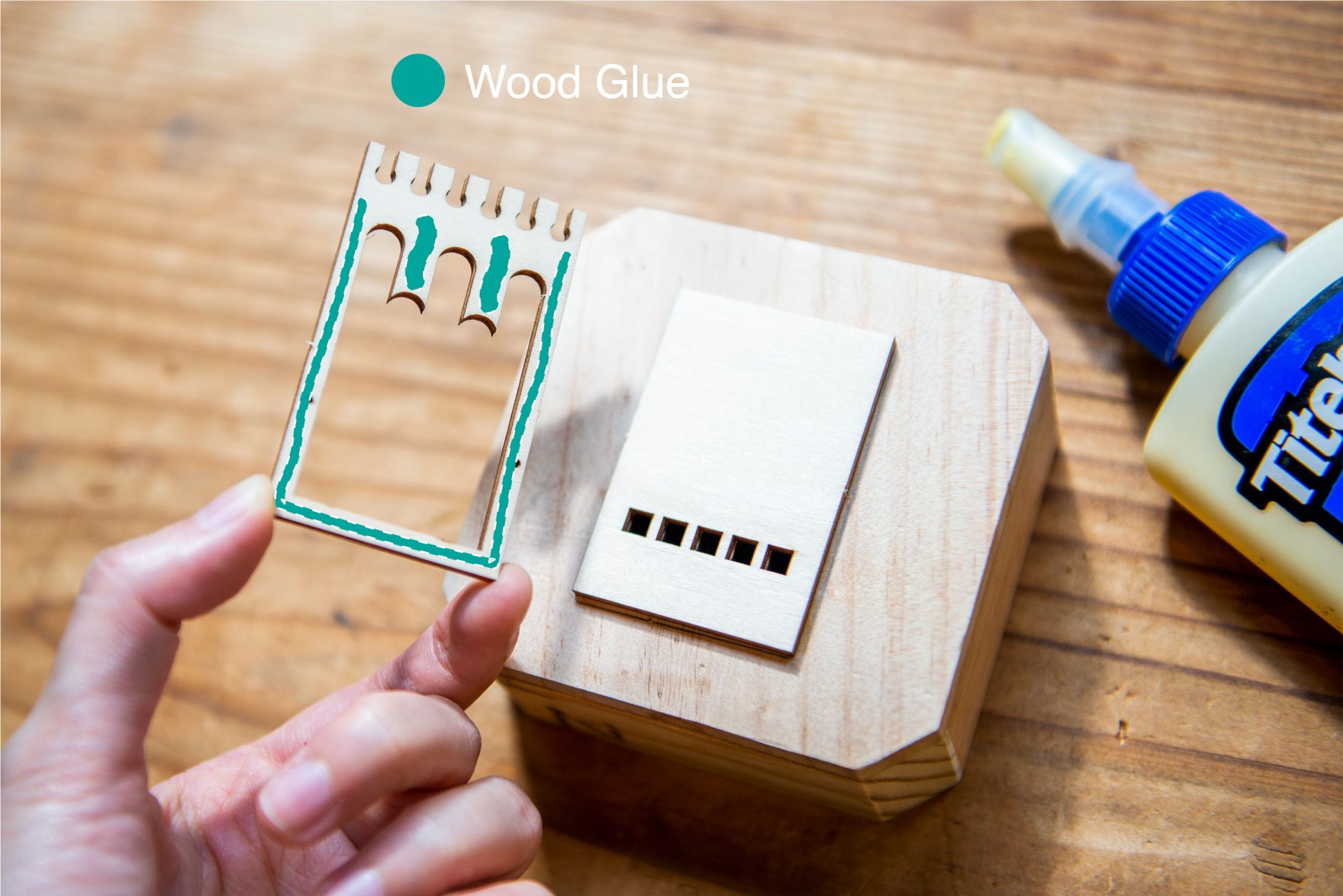 5/ 黏上以上零件,如有多的木工膠水溢出,請立即以牙簽清走。