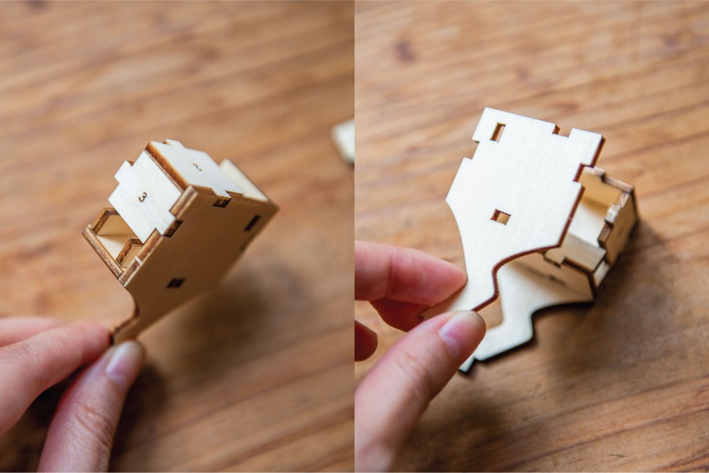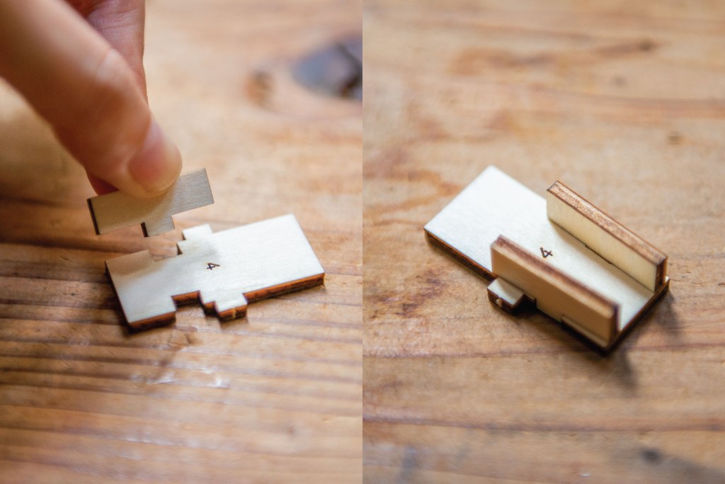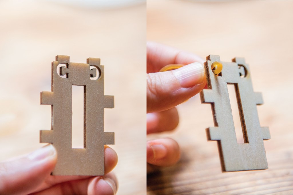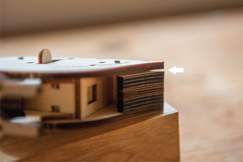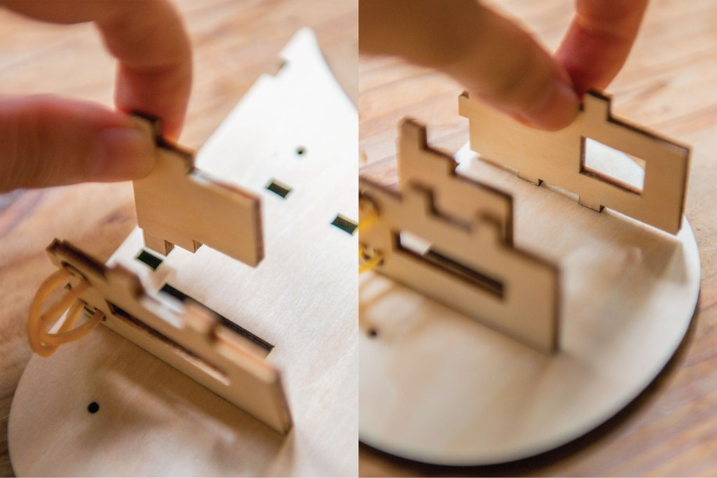 3/ 反轉身體木板到無字嗰邊 (如圖左),將頭先有橡根嘅配件攝落上圖嘅位置,為左減少用膠水,榫位要用陰力攝入去。