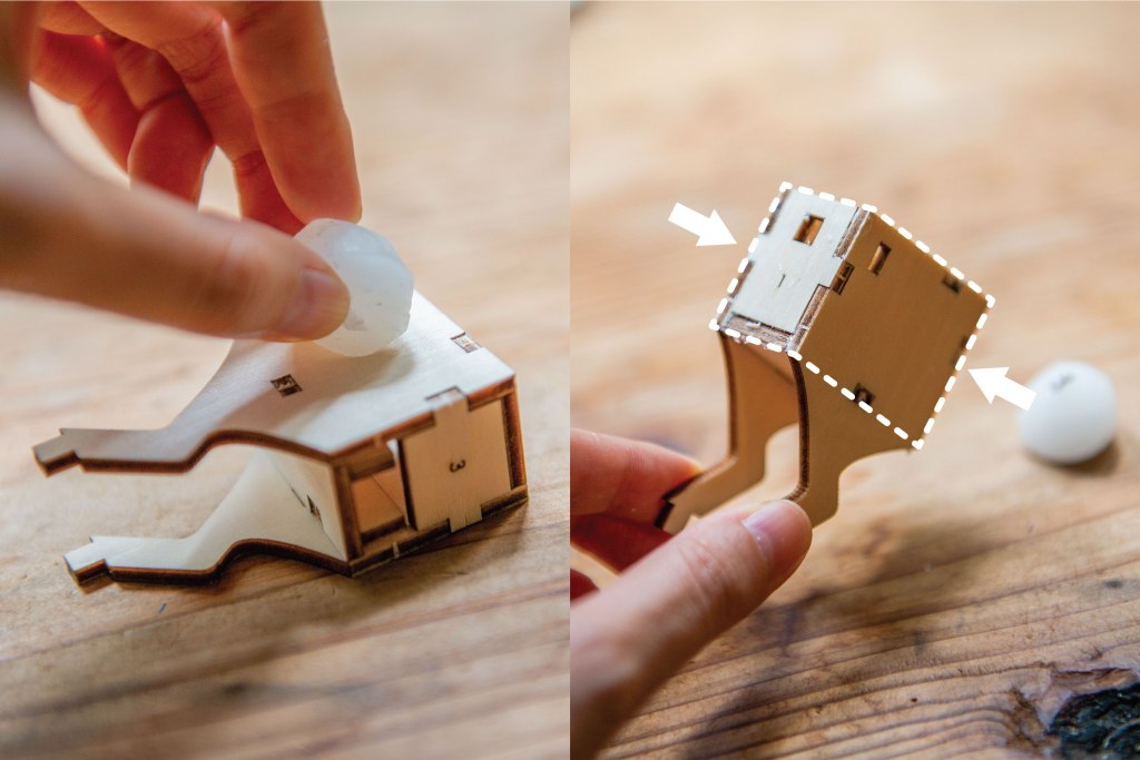 11/ 測試成功之後,係腳掌嘅方形窿入面加啲木工膠膠,裝腳上去,待乾。
