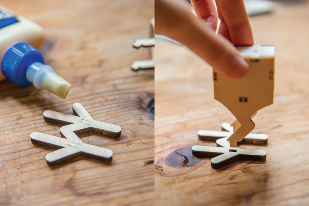 4/ 用木工膠痴埋佢地,尾部位置同樣做法,抹走多餘嘅木工膠。