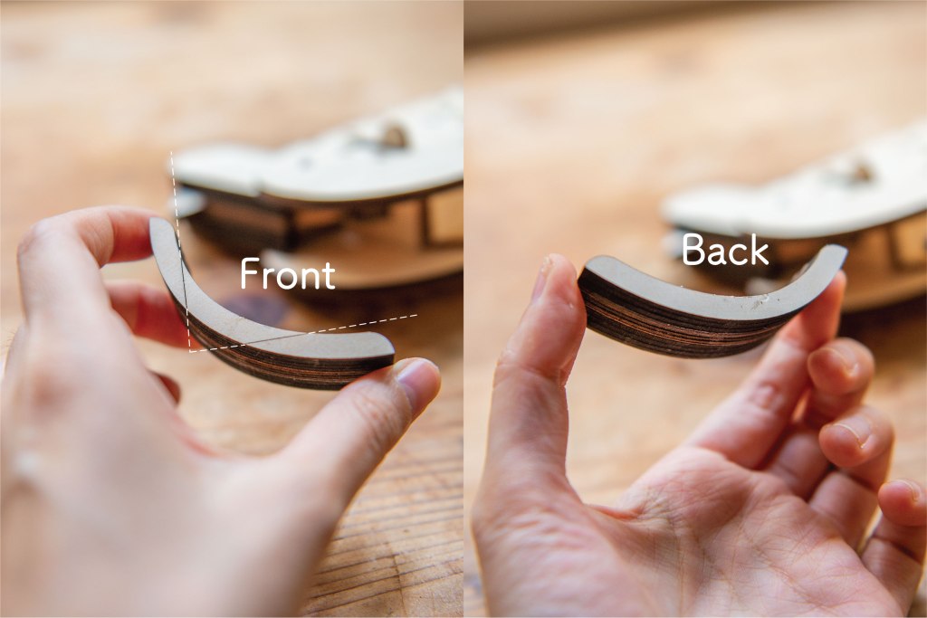5/ 頭部位置同樣厚、薄、厚咁痴埋,留意要按彎線嘅形狀組合埋佢地,低面兩塊同樣方面,唔好調轉。