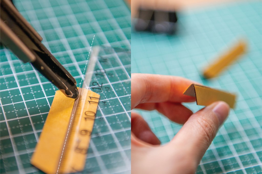2/ 卡紙中間有條中線,用尖嘅野壓一條摺紋出嚟,之後對摺。