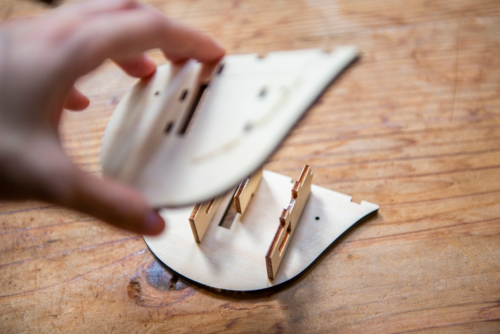 25/ 反轉翅膀到無劃線嘅背面,裝上配件,再喺表面搽蠟。