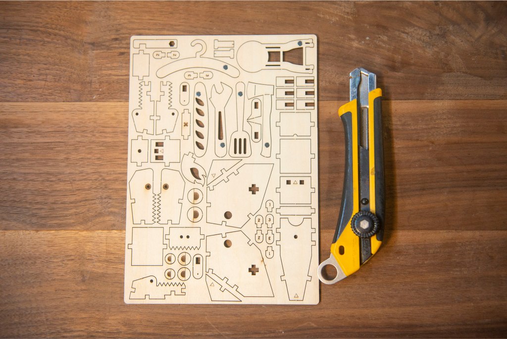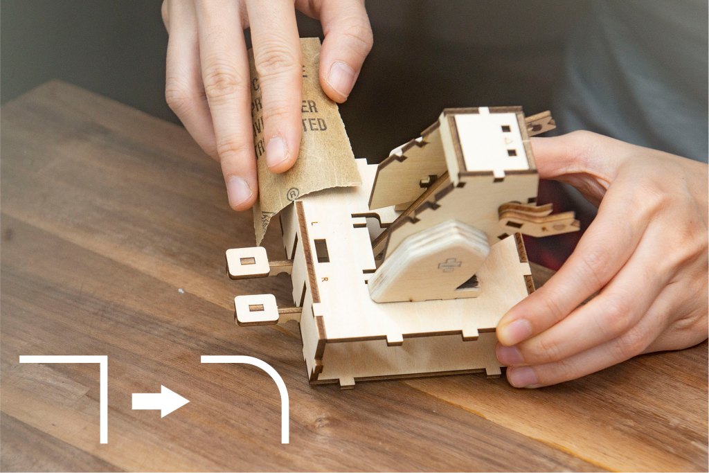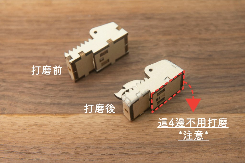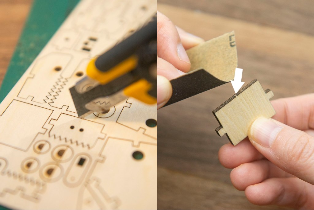 技巧:可用𠝹刀協助取出木零件,再以砂紙稍微磨走木刺。