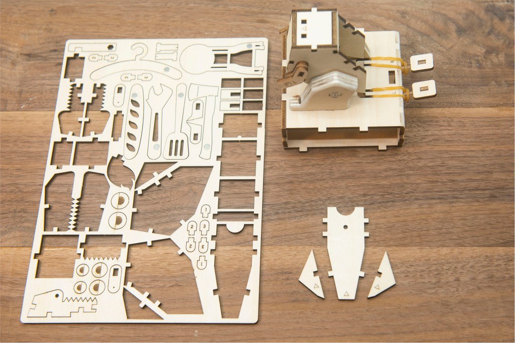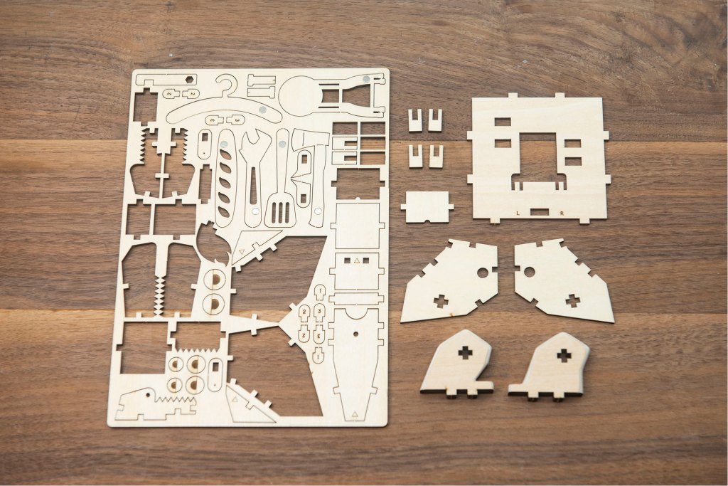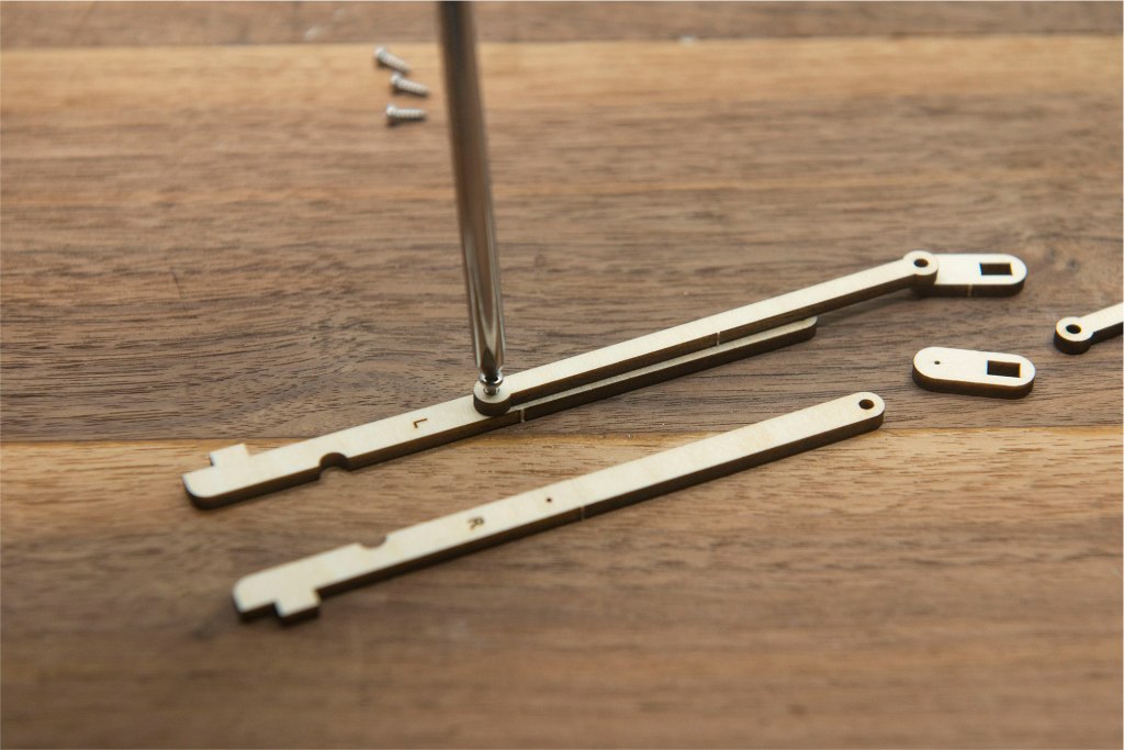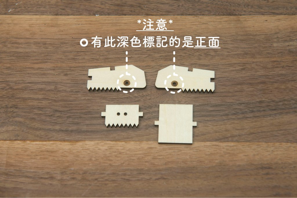 22/ 取出以上木零件,和4顆小螺絲,有1顆小螺絲是後備。