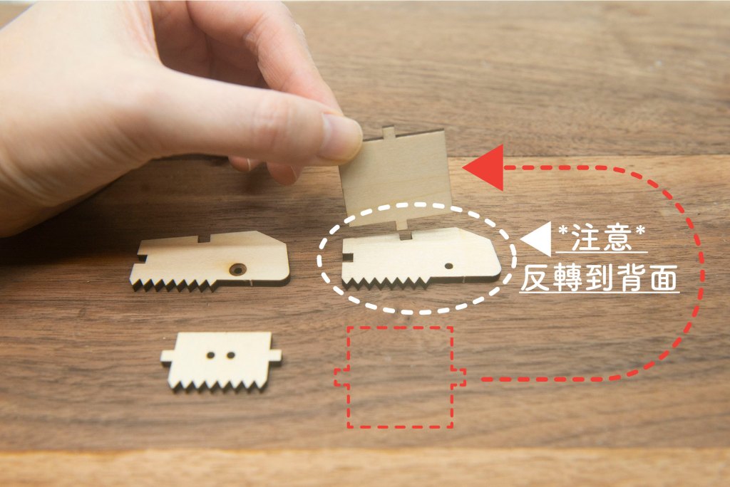 3/ 如上圖開始組裝,將上圖零件反轉到背面,