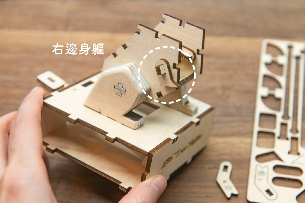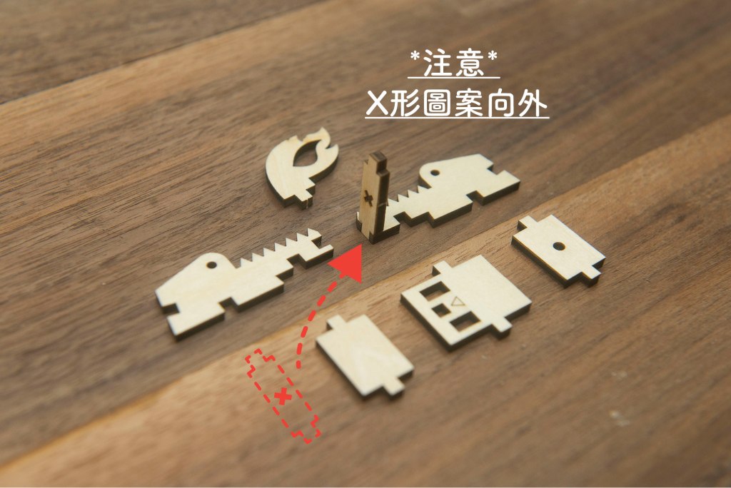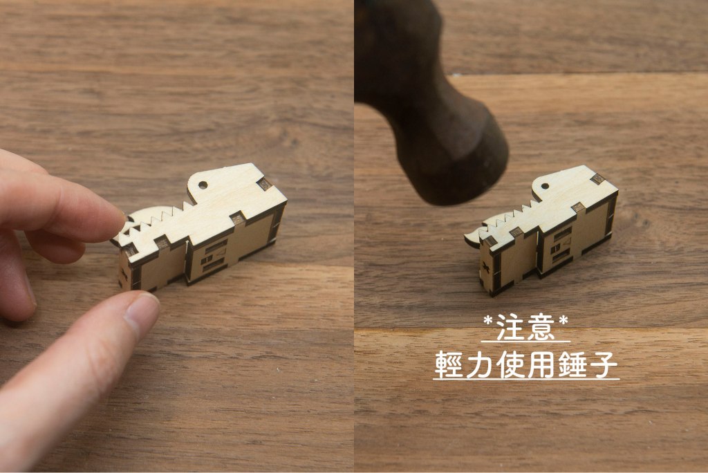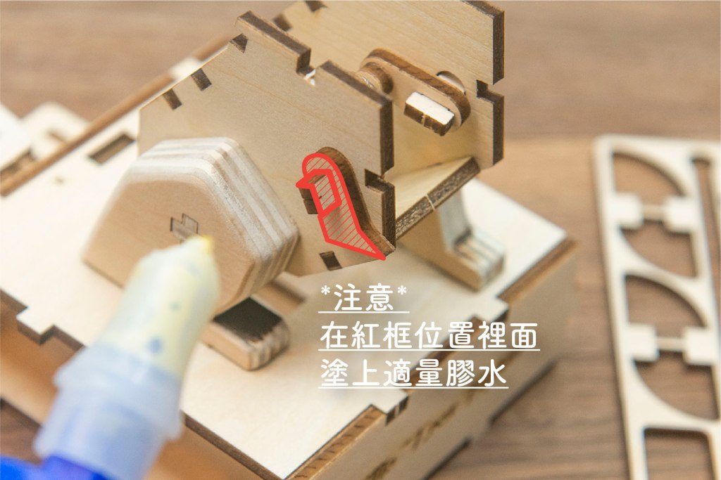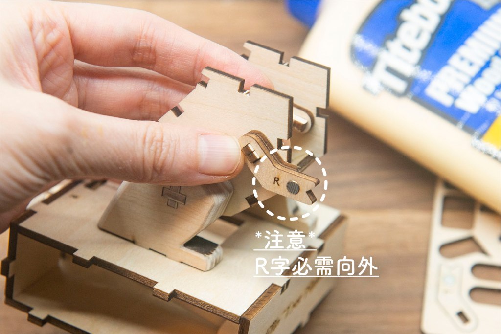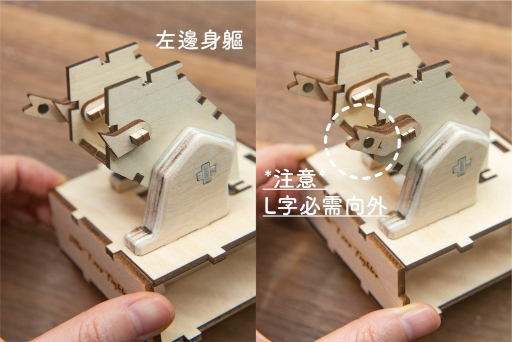榫位如果較實,可左右搖動慢慢組裝,切忌用死力,有可能會折斷木零件;