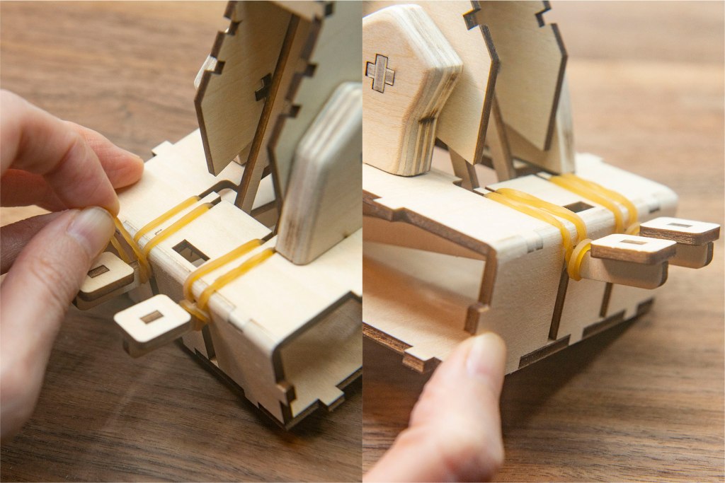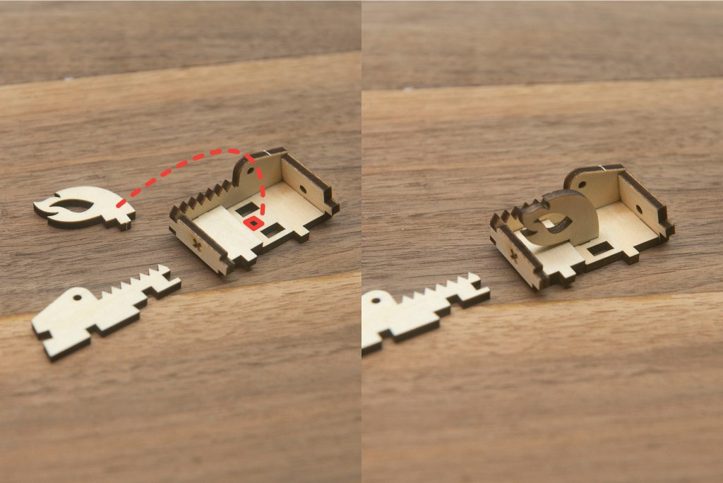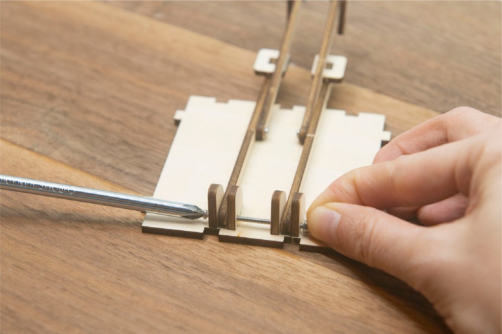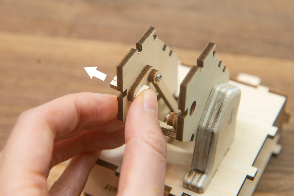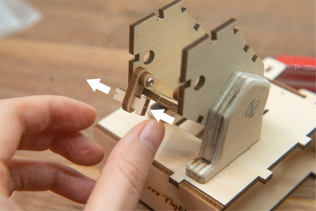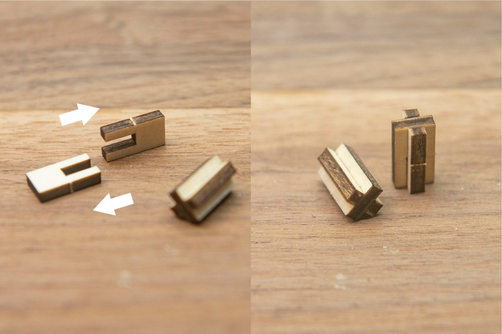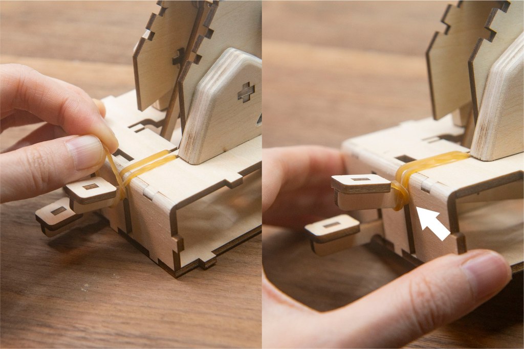 榫位如果較實,可左右搖動慢慢組裝,切忌用死力,有可能會折斷木零件;