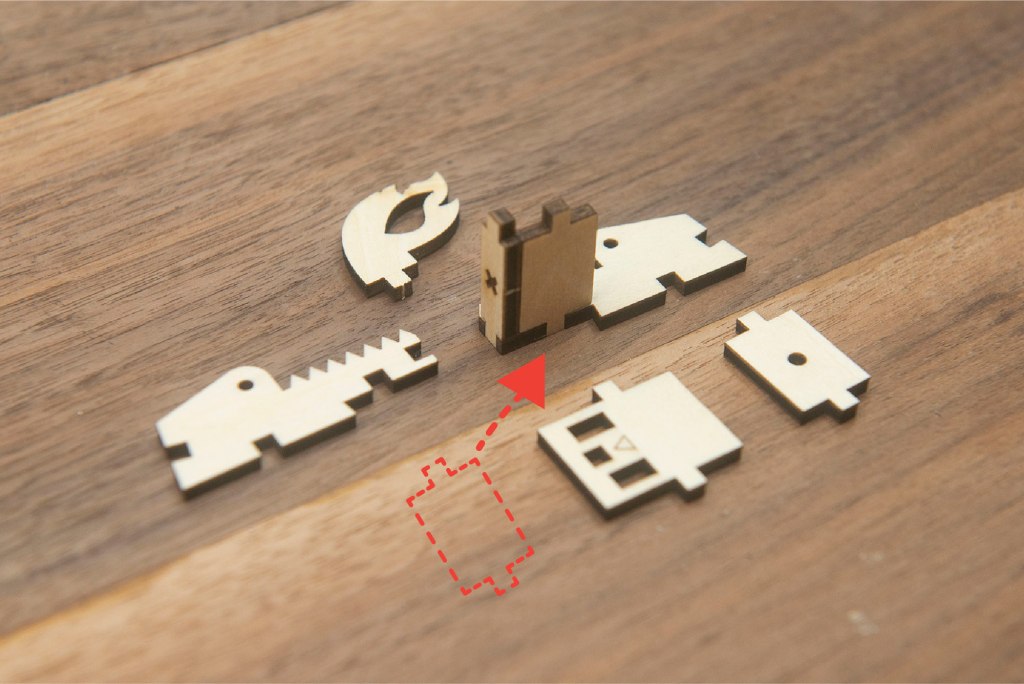 28/ 取出箭咀所示的木零件。
