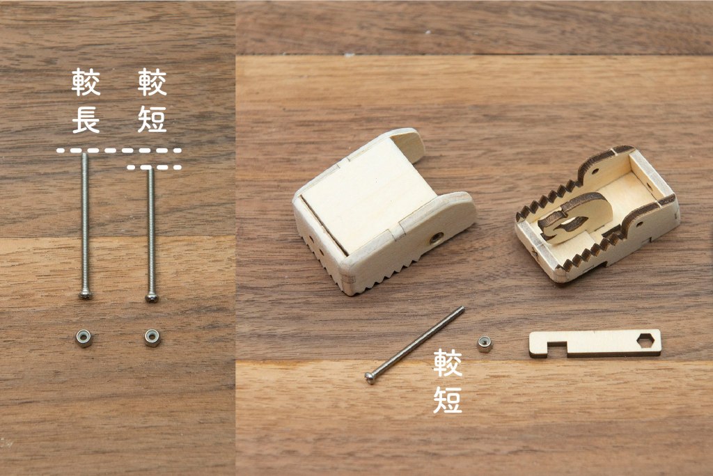 17/ 取出以上零件,和較短的螺絲、螺絲帽。