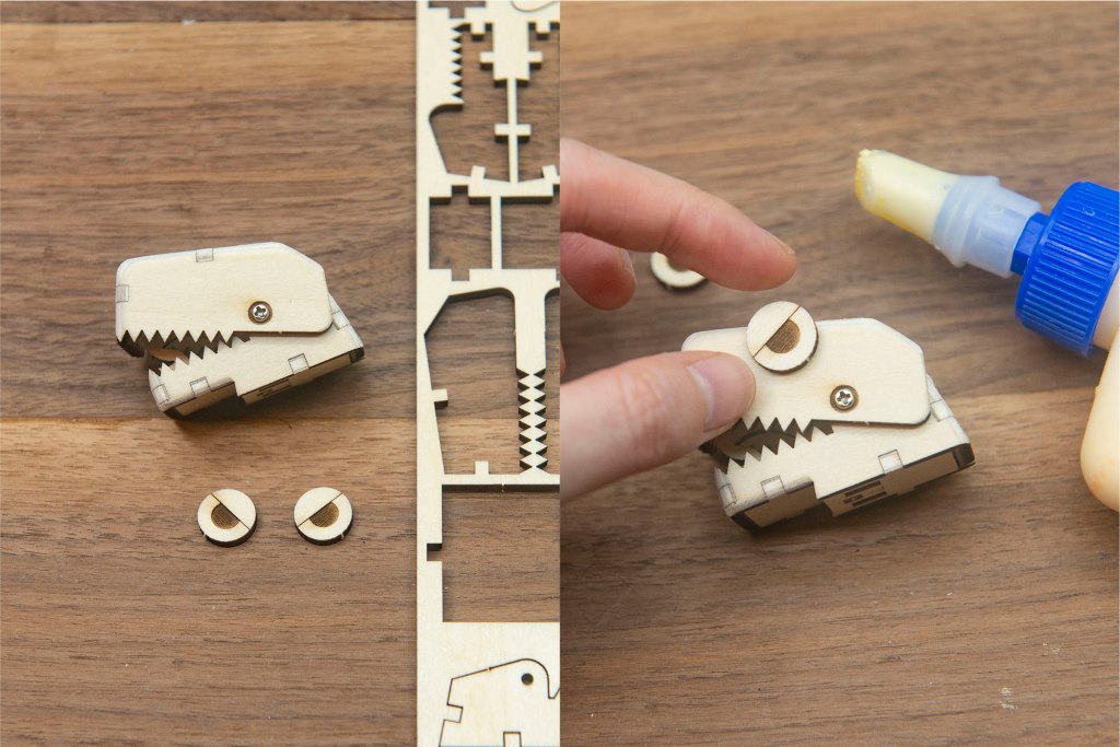 20/ 木片上有不同大小的眼晴,可按自己的喜好,以膠水黏上。