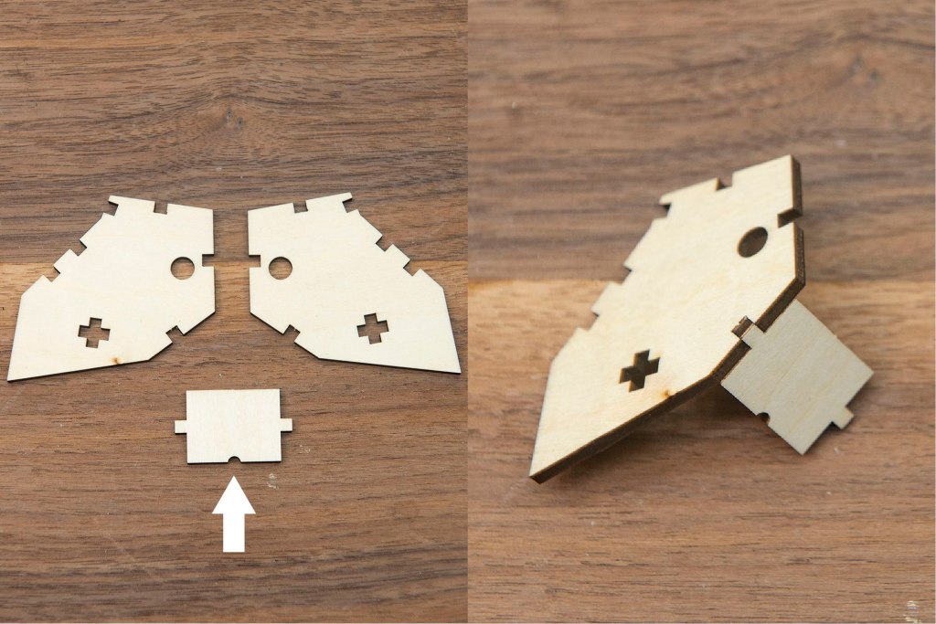 47/ 確認箭咀所示的木零件形狀,如圖右組裝。