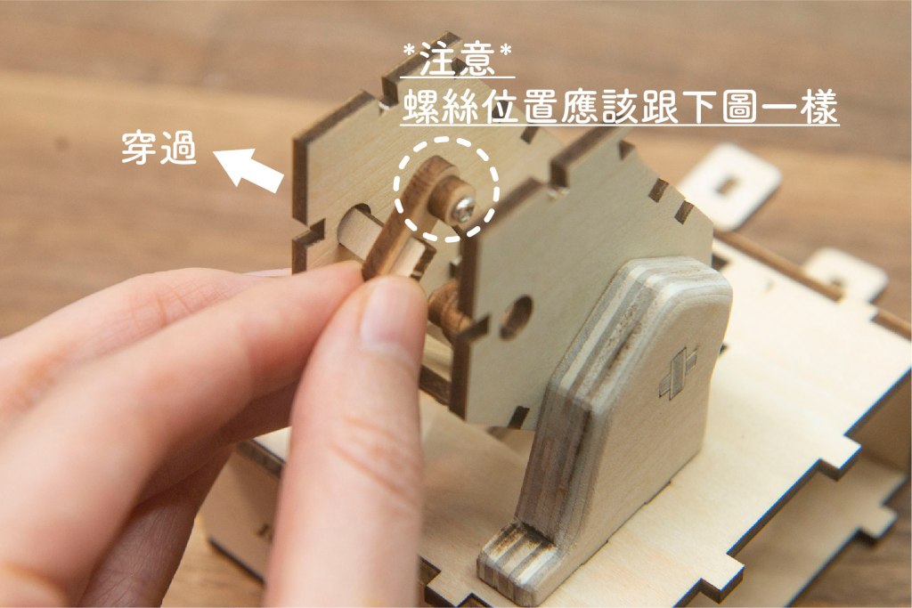 24/ 如上圖扭上螺絲,與木片底部齊平。
