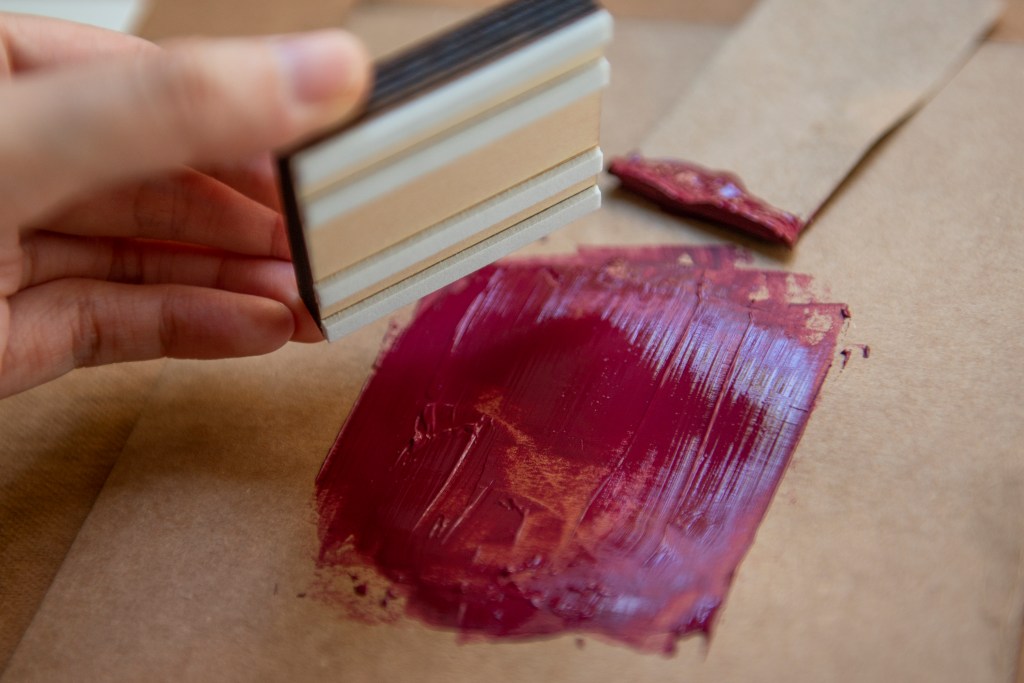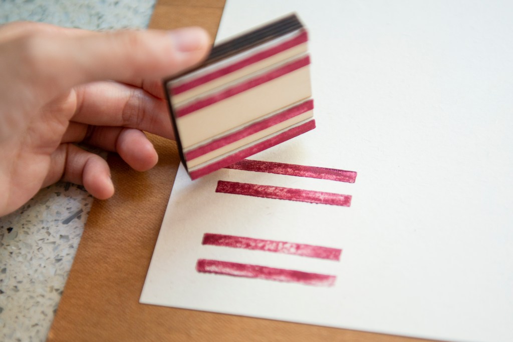 1/ 印章的顏料除了傳統的印台外,測試過Acrylic/ 廣告彩/ 板畫顏料當中,Aryclic 效果是最好的。