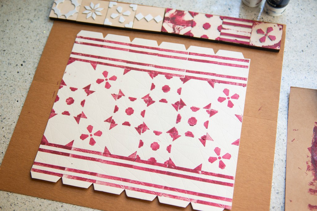 風箱紙的正面,是有凹陷壓紋的那一邊,注意圖案要印到正面。