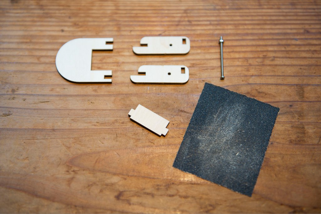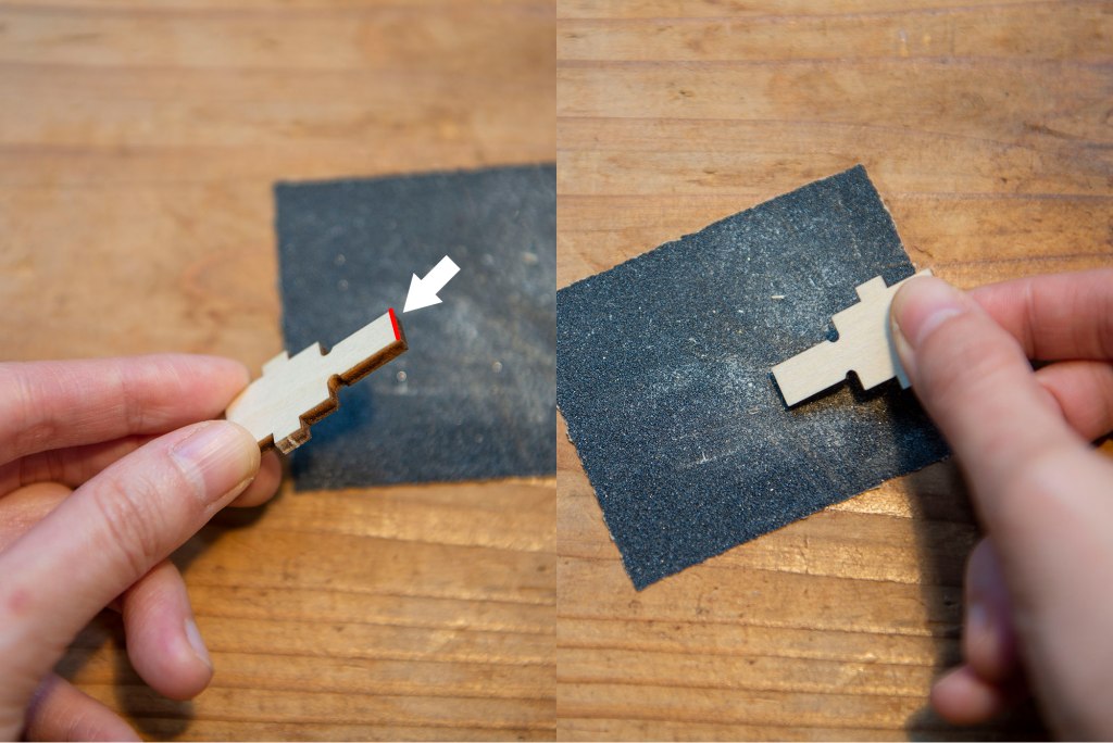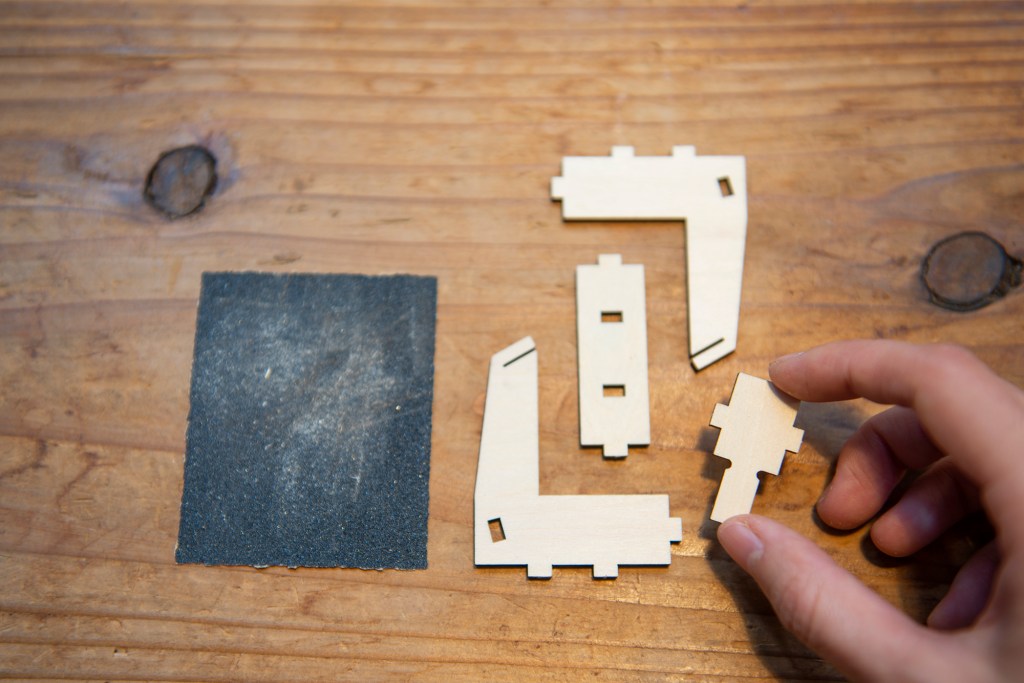 1/ 將木板上的零件取出,以砂紙打磨水口位。
