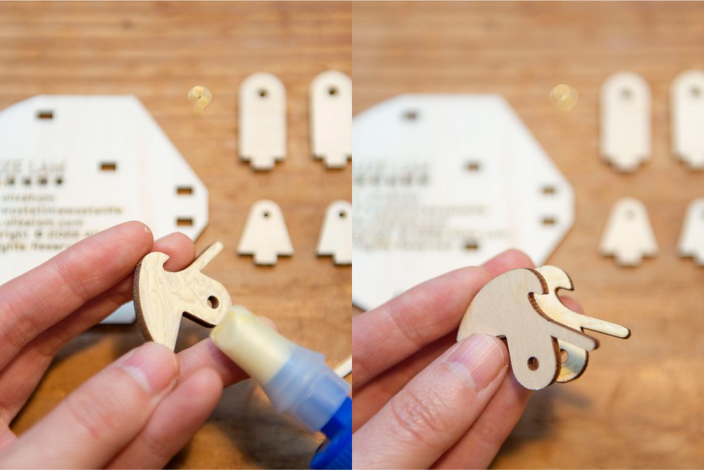 4/ 以膠水 (木工膠水/白膠漿) 將上圖兩起塊零件黏在一起。
