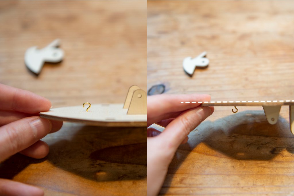 9/ 勾形的開回方面如上圖,注意螺絲尾不要穿越過木板的底部。