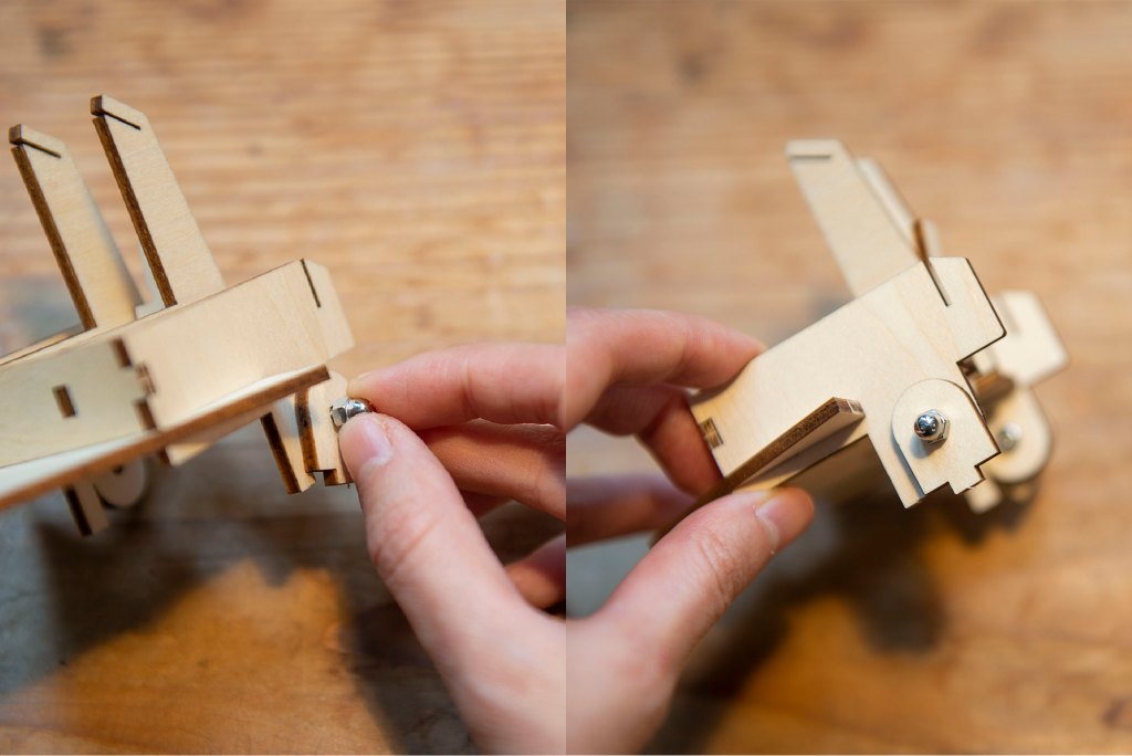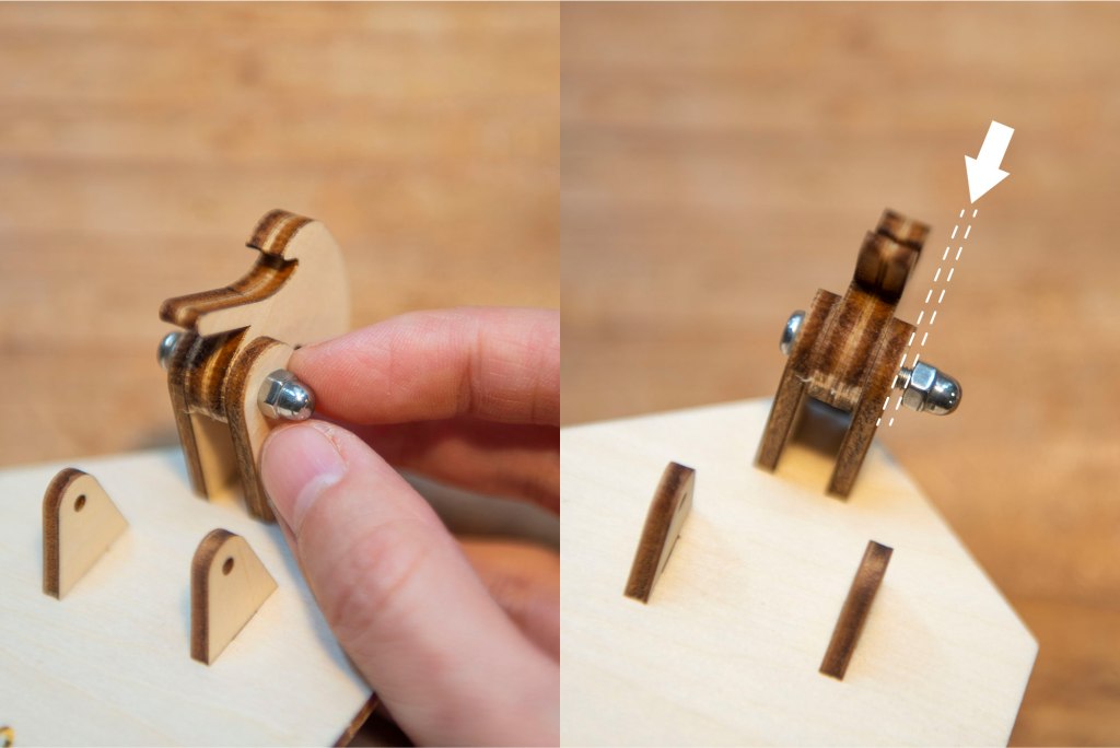 36/ 扭上螺絲帽,注意不要扭到最緊,測試一下這部份是否能上下鬆動地活動。
