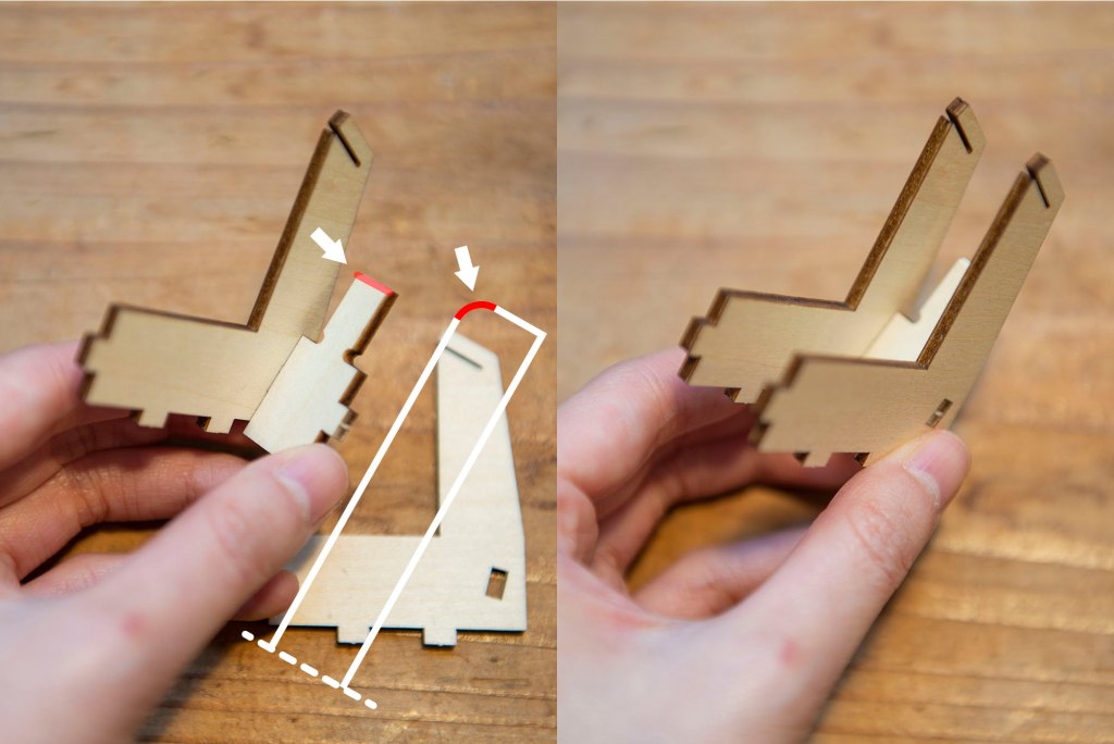 31/ 如上圖組裝,留意打磨了圓邊的方向。