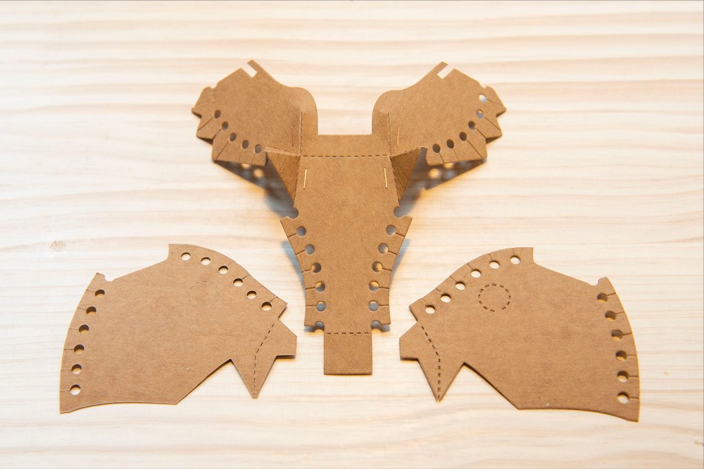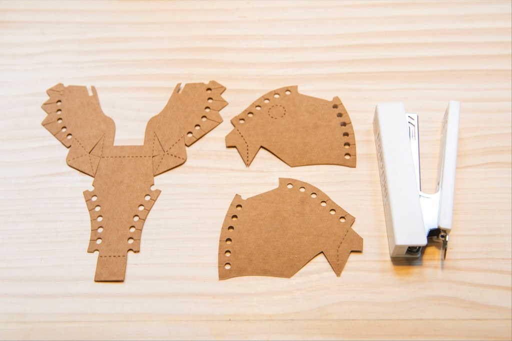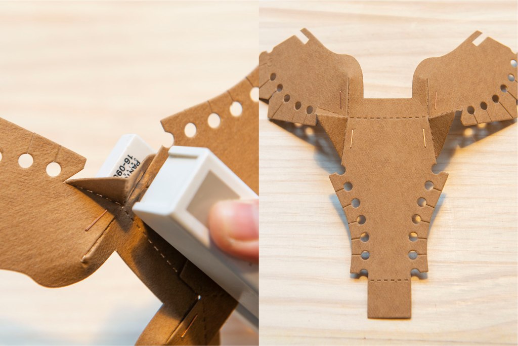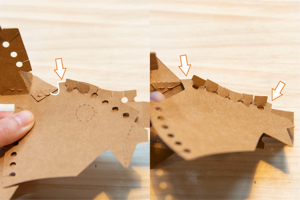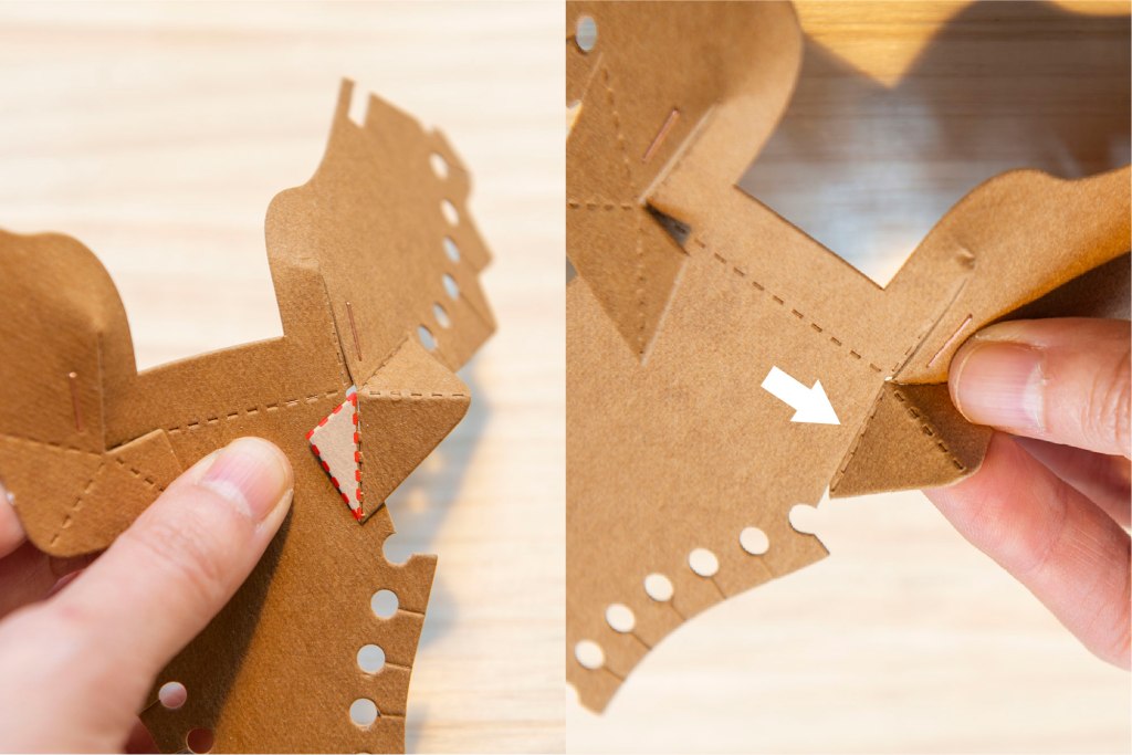 61/ 如圖左摺疊鼻子和兩邊,對齊後以釘書機/膠水固定。