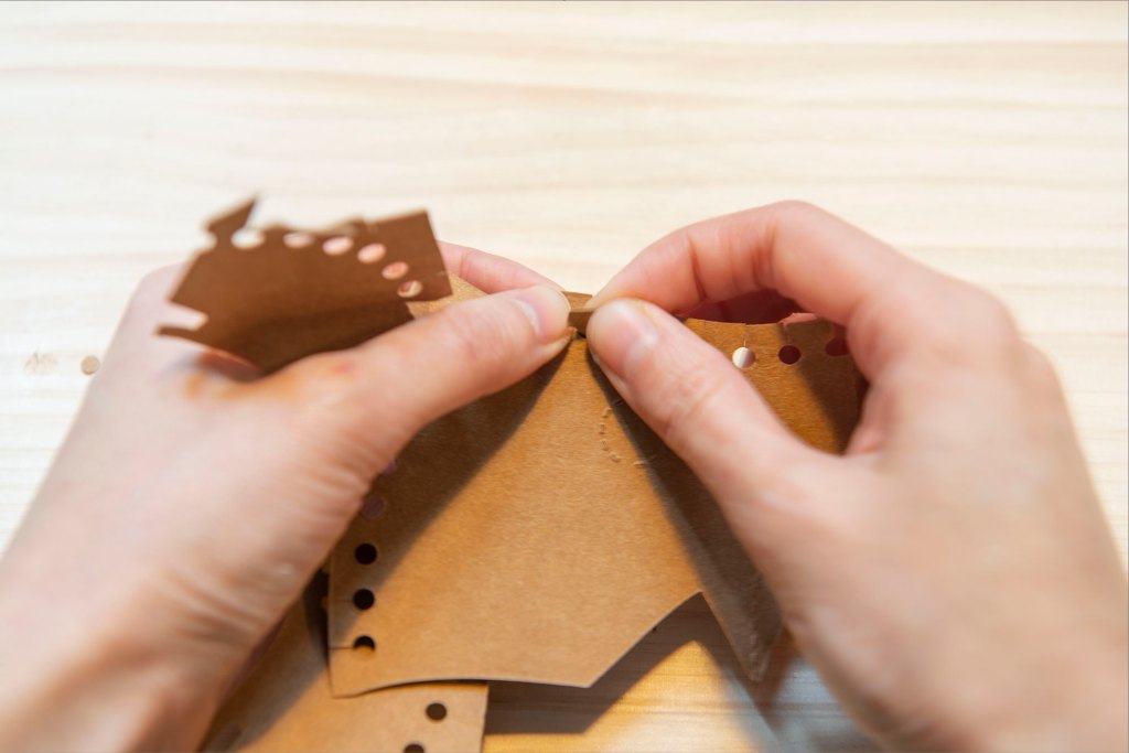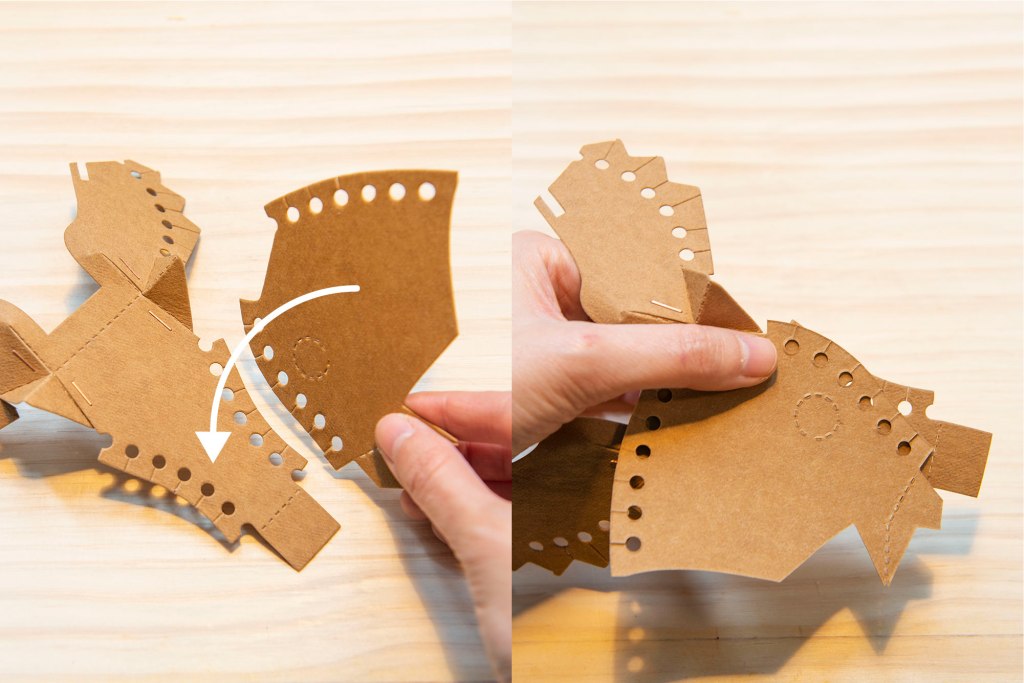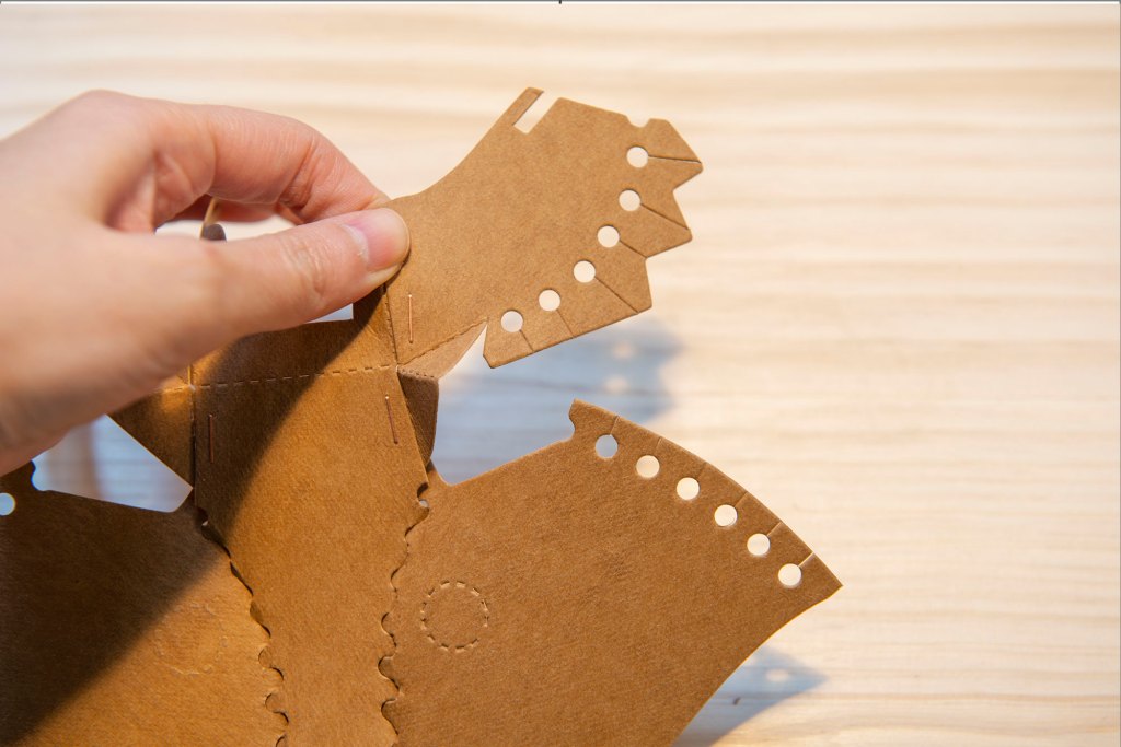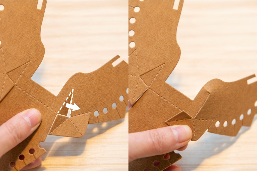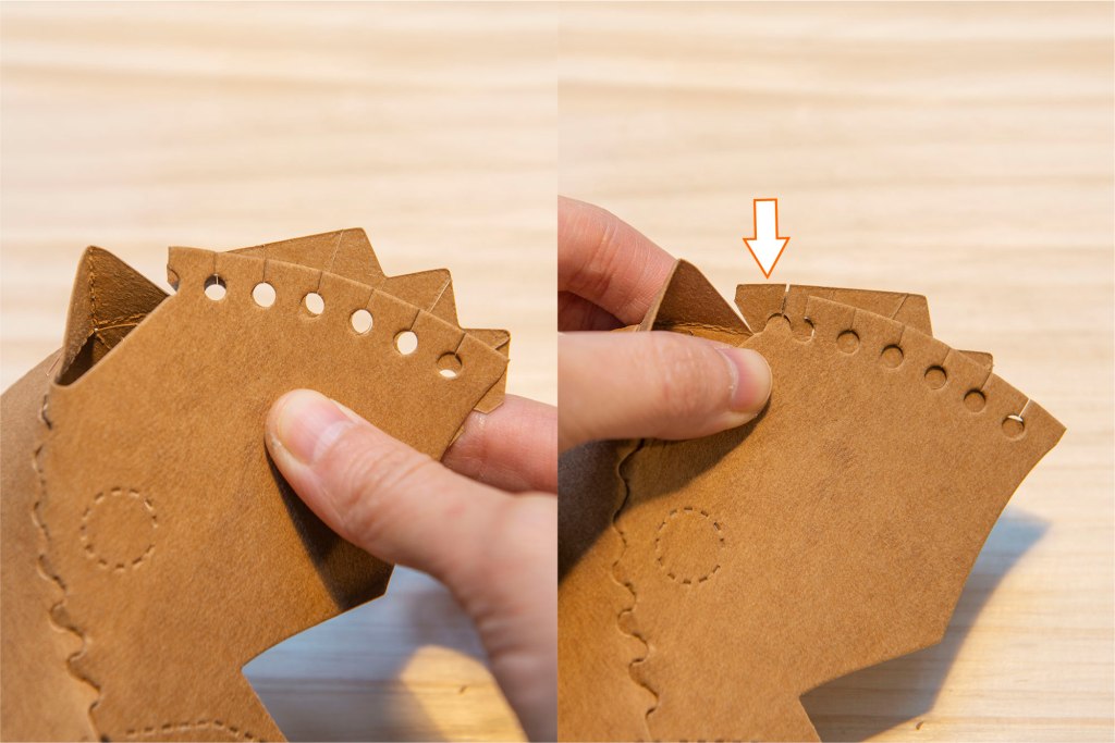 53/ 前後互相卡住,水洗牛皮紙非常堅韌,不易撕壞,這此部份大家可以大膽地屈摺紙張。