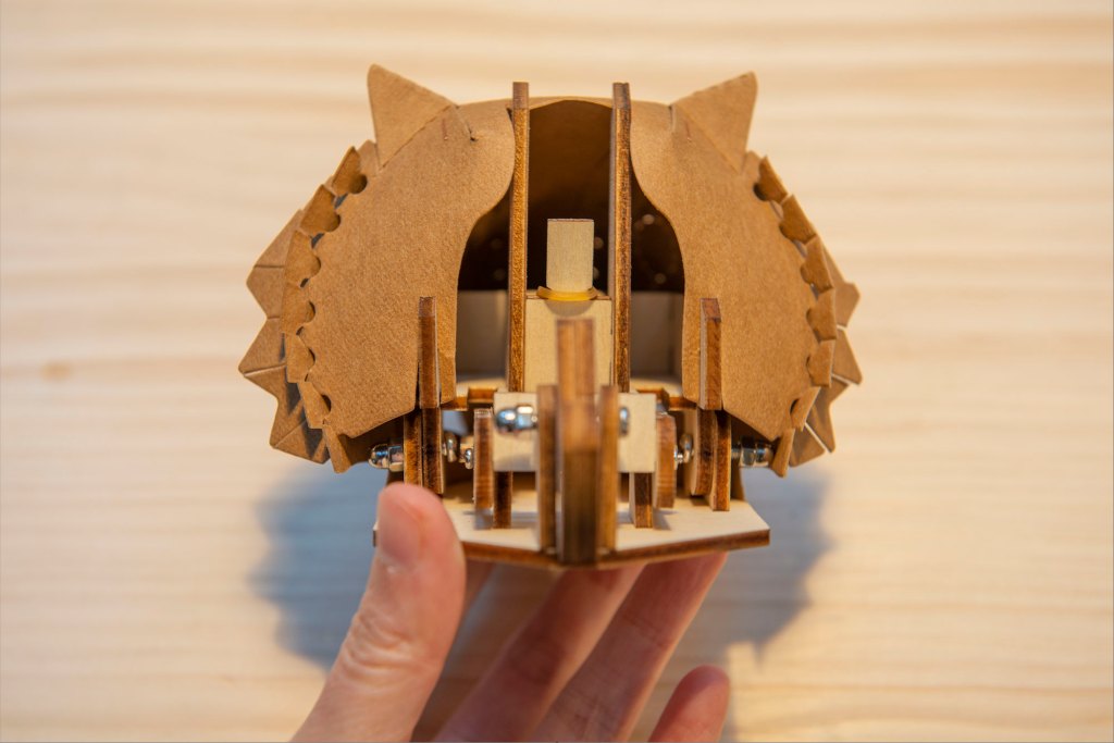 63/ 把完成的虎頭裝上木零件上。